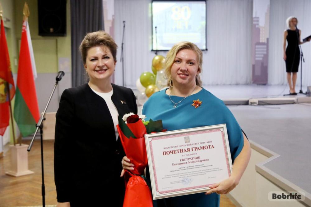 - Уважаемые коллеги, ветераны педагогического труда, гости! От имени руководства города поздравляю вас с юбилейной датой - 80-летием со дня основания. Славный пройден путь. И этот путь - ровесник Великой Победы. История послевоенного Бобруйска тесно связана с историей тогда еще училища, сейчас технологического колледжа. И сегодня невозможно представить развитие нашего города без вашей работы. Уважаемые коллеги, вы делаете крайне важное для нашего города и для всей страны дело. Профессии, которым вы обучаете молодое поколение здесь, кадры, которые вы готовите, были, есть и будут востребованы в Бобруйске и стране в целом. Слова благодарности и признательности ветеранам педагогического труда, руководителям, присутствующим здесь, которые отдали не один десяток лет этой великой профессии. Будьте здоровы, полны оптимизма. Здоровья, благополучия, мира и добра вам и вашим семьям. Коллективу учреждения развития, успехов и новых побед! С праздником! – поздравила Ирина Рынейская.