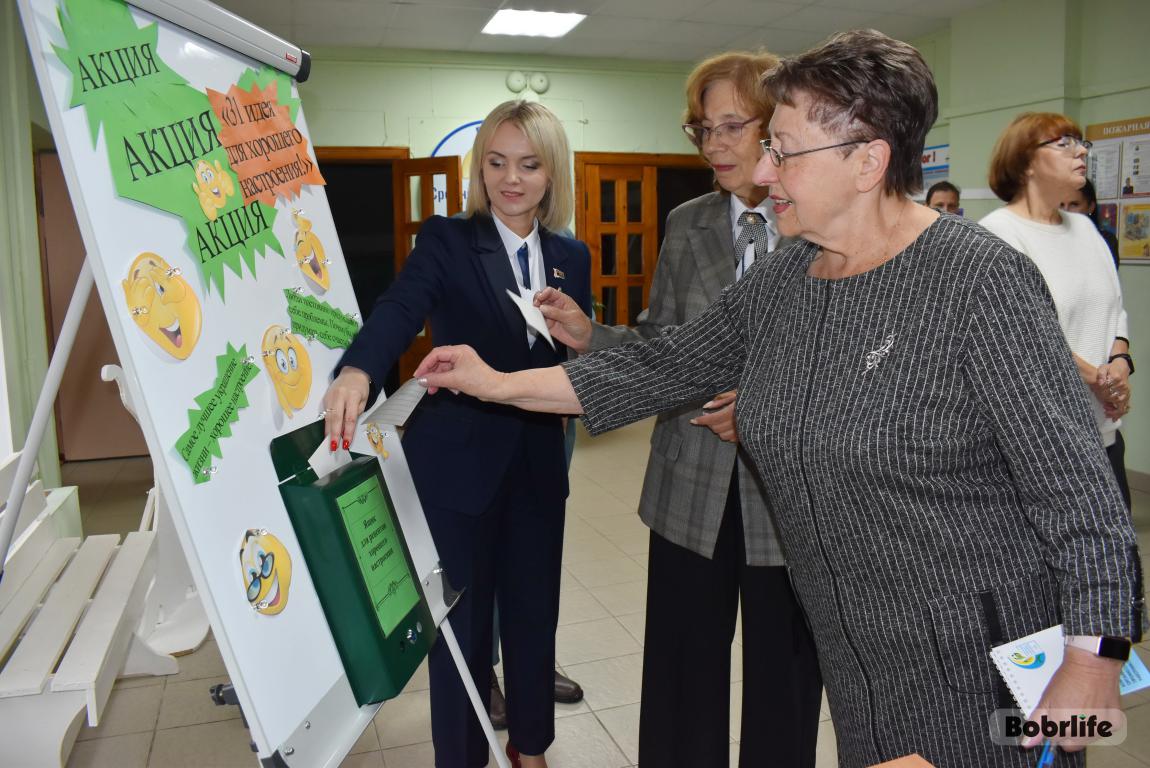 Праздничная атмосфера чувствовалась с порога: воздушные шары, яркие плакаты, мотивирующие хештеги. Школа подготовила к празднику тематическую экспозицию, где на фотографиях застыла ее история – ключевые моменты и важные вехи. 2-я средняя взрастила не одно поколение учеников, многие из которых стали гордостью не только Бобруйска, но и всей страны. Центральное место на выставке занял школьный журнал «Современник», который издавали учащиеся и педагоги. Здесь собраны лучшие творческие работы ребят. Рядом – стенды с поздравительными открытками от учеников наставникам и изделия декоративно-прикладного искусства, созданные руками детей. Особое внимание привлек почтовый ящик для рецептов хорошего настроения. Каждый посетитель в этот день мог поделиться своим секретом радости, написав его на бумаге и опустив в почтовый ящик.