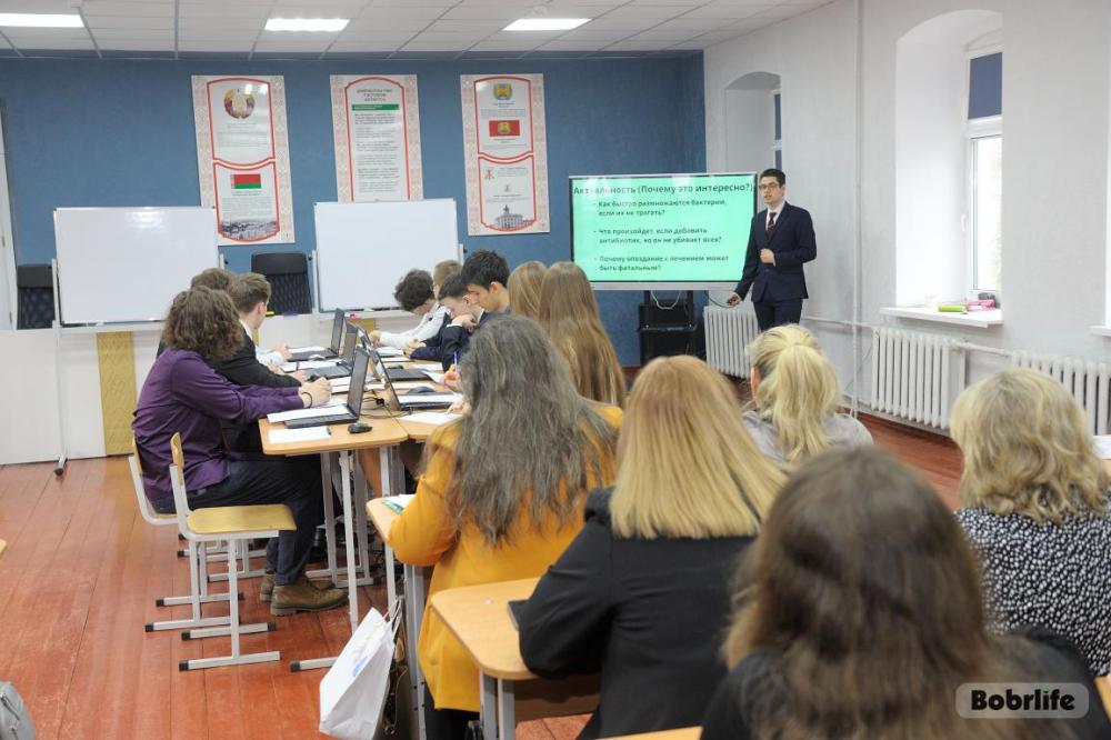 Знакомство с учебным заведением началось ярко и динамично – учащиеся презентовали гостям интерактивную «визитку» гимназии. Через музыку, слово и танцы ребята рассказали о традициях, достижениях и духе своего учреждения образования, настроив участников мероприятия на созидательную работу. Затем гости ознакомились с выставкой проектов технического творчества учащихся. Гимназисты продемонстрировали свои наработки в области экологии, благоустройства городской инфраструктуры, инженерии и робототехники, наглядно доказав, что точные науки – это фундамент для самых смелых и современных изобретений.