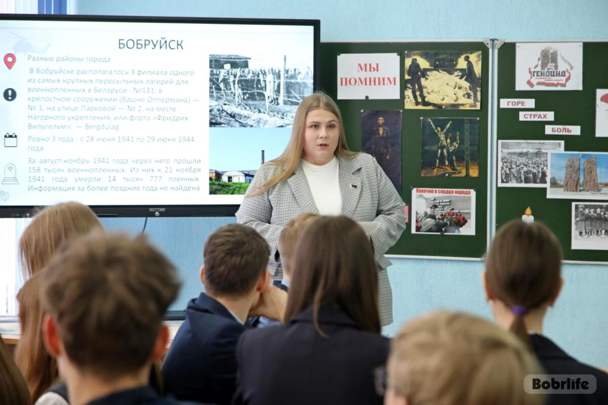 Завершилась встреча практической работой: ученики заполняли таблицы с названиями лагерей, их местоположением и числом жертв, используя пособия о геноциде белорусского народа. «Память нужна не только для того, чтобы погибшие не были забыты, – сказала в завершение ведущая, – а чтобы их загубленные жизни не оказались напрасными».