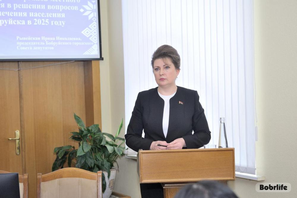 На сессии председатель горсовета Ирина Рынейская озвучила акценты и основные направления в работе депутатского корпуса в прошлом году. Пристальное внимание – взаимодействию с горожанами и активизации органов местного самоуправления, работе с молодежью и ветеранами. Ирина Николаевна отметила положительную тенденцию: бобруйчане стали активнее включаться в благоустройство города, наведение чистоты и красоты на улицах и во дворах. С участием неравнодушных жителей были реализованы гражданские и молодежные инициативы, посвященные 80-летию Победы.