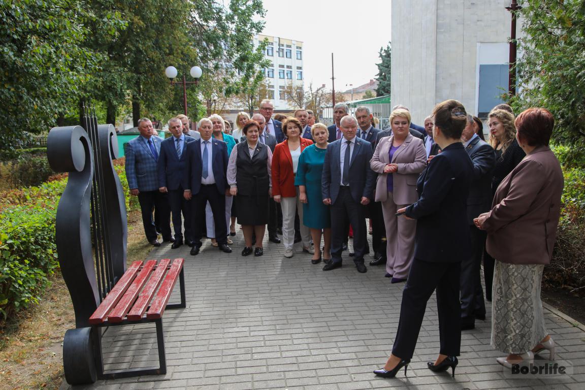 Участники мероприятия посетили знаковое место города – площадь Победы, где возложили цветы в знак уважения и благодарности героям Великой Отечественной войны. Небольшой променад по Социалистической улице до уютного сквера возле театра им. В.И. Дунина-Марцинкевича сопровождался знакомством с историей Бобруйска. «Музыкальные» скамейки в сквере радуют жителей и гостей города с начала 2024 года. Появилась оригинальная композиция и прекрасное место для фотосессий благодаря проекту бобруйчанки Кристины Лещенко, который она защитила на ежегодном городском смотре-конкурсе инициатив «Молодежный взгляд: битва идей». Пять малых архитектурных форм изображают стилизованные музыкальные инструменты, изготовленные из металла на Бобруйской фабрике художественных изделий.