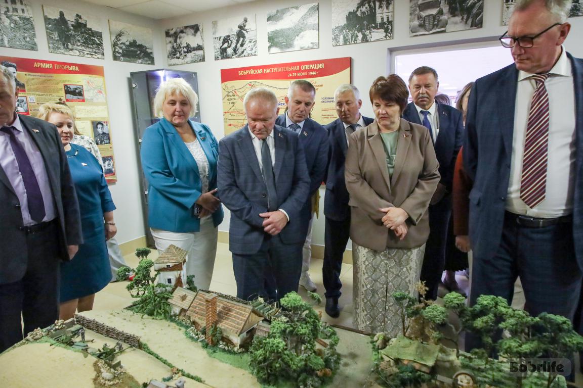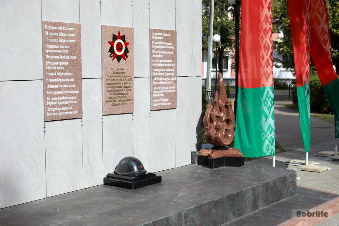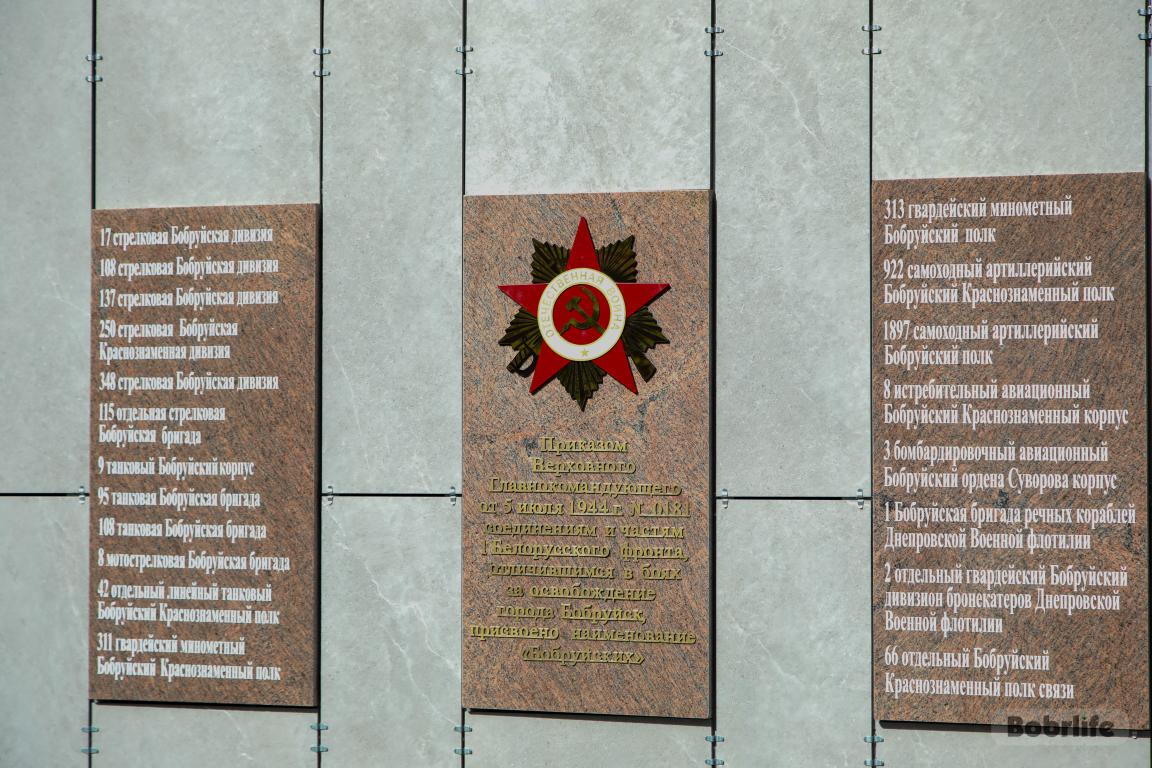 Следующая локация – памятник в честь войсковых частей и соединений, отличившихся при освобождении Бобруйска, который торжественно открыли после реконструкции 31 июля. В основе реализации этого проекта – инициатива Бобруйского горсовета депутатов и неравнодушных жителей города. Как подчеркнул заместитель председателя горсовета Виталий Подобед, на реконструкцию было затрачено более 55 тысяч рублей, из которых более 6 тысяч собрано бобруйчанами. На обновленном мемориале увековечены названия двадцати наиболее отличившихся войсковых частей и соединений, участвовавших в освобождении Бобруйска. Приказом Верховного Главнокомандующего Вооруженными Силами СССР от 5 июля 1944 года им присвоены почетные наименования «Бобруйских». В память о мужестве и подвиге воинов-освободителей к мемориалу возложили цветы.