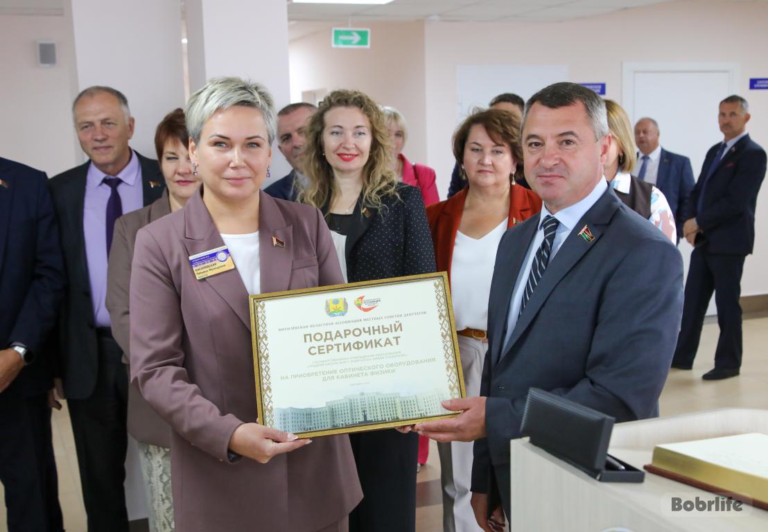 Александр Горошкин вручил школе сертификат на приобретение оборудования, а все гости получили сувениры от ребят.