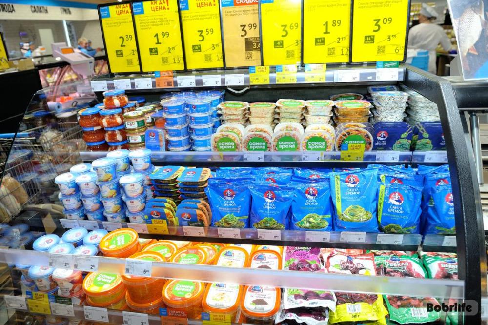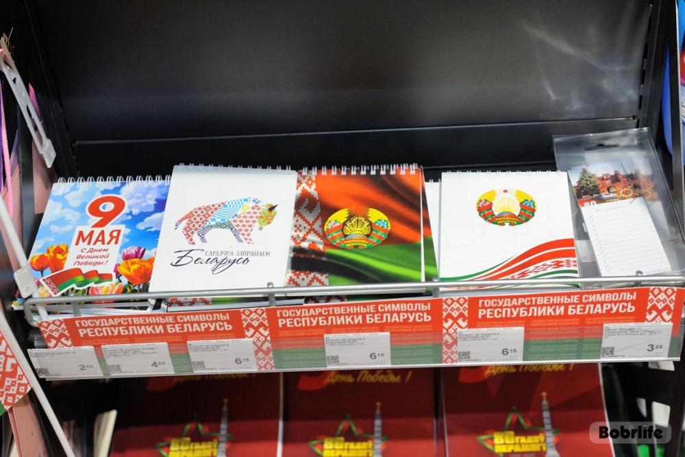 Вышеперечисленные магазины хорошо известны каждому бобруйчанину и ежедневно обслуживают сотни покупателей. В «Санте» представлен широкий выбор белорусских овощей – помидоры, огурцы, лук, картошка, морковь. Особое внимание – товарам местных производителей. Продукция Бобруйского завода растительных масел, «Бабушкиной крынки» и других предприятий – на уровне глаз. В каждом отделе «подмигивают» позиции красно-зелеными ценниками «Зроблена ў Беларусі» и «Купляйце беларускае». Стеллаж товаров с государственной символикой расположился у входа недалеко от касс самообслуживания. Можно приобрести памятные сувениры: магниты, кружки, блокноты, брелоки и значки.