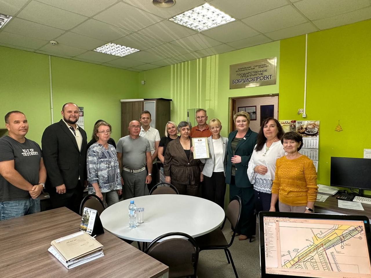 Благодарственное письмо председателя Постоянной комиссии Палаты представителей по жилищной политике, торговле и строительству Юрия Наркевича, врученное депутатом Ольгой Жук в ходе встречи с коллективом, займёт достойное место среди заслуженных наград УКП "Бобруйскпроект".