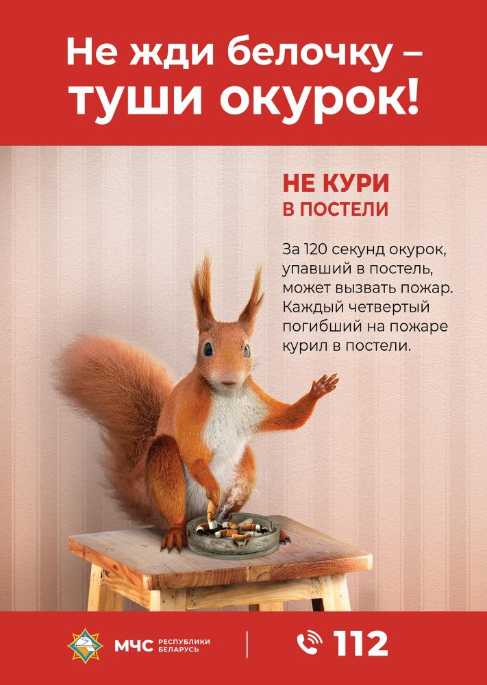 ни в коем случае не курите в постели, а также вблизи сгораемых веществ и материалов, этого же требуйте от посещающих Вас гостей;