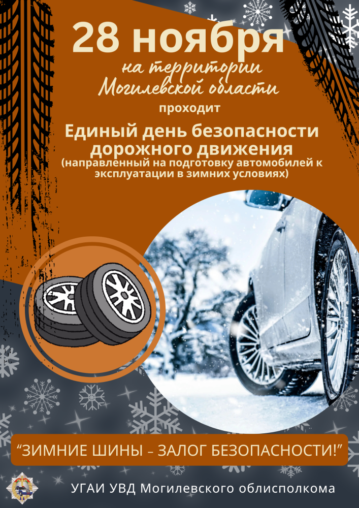 «Зимние шины – залог безопасности!» – под таким названием 28 ноября 2025 года пройдет Единый день безопасности дорожного движения, посвященный теме подготовки машин к эксплуатации в зимних условиях.
