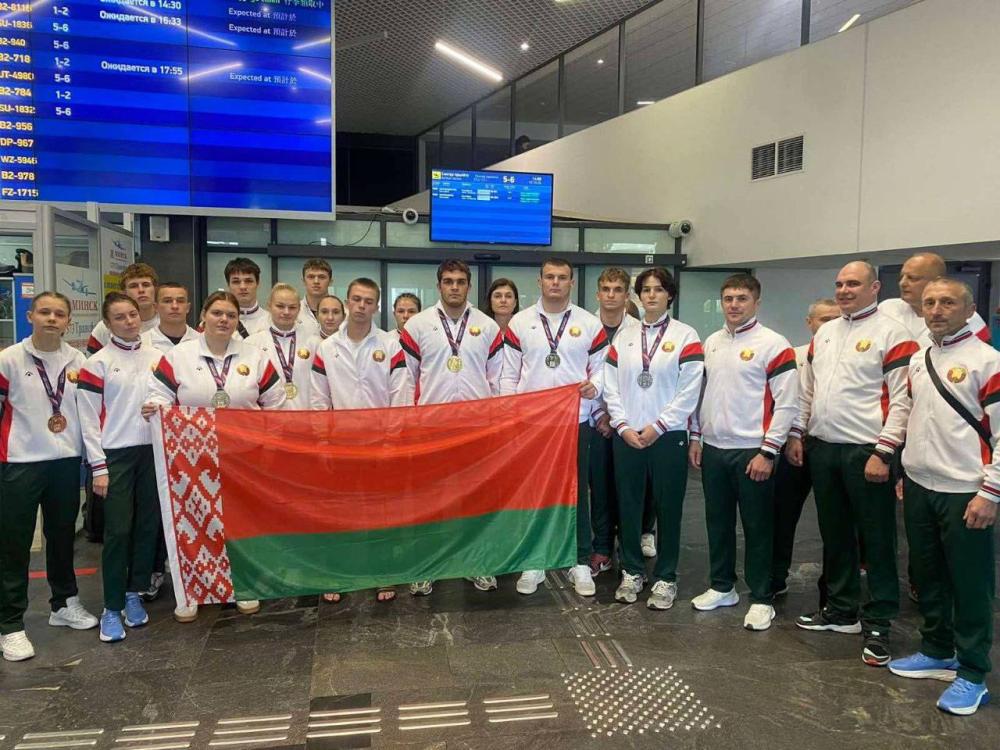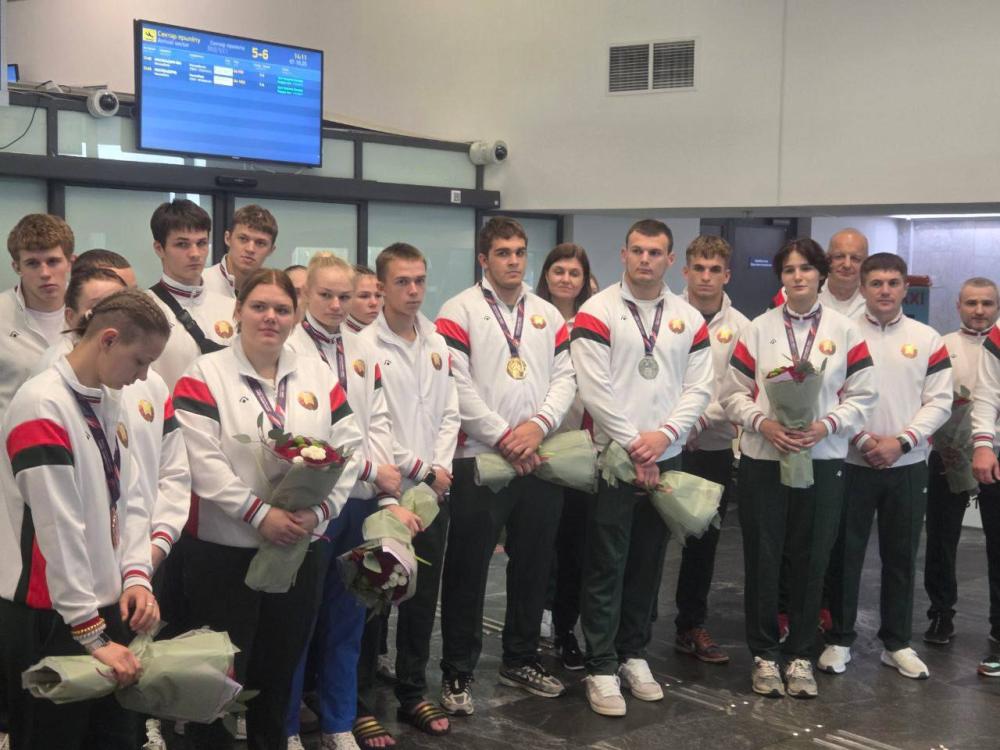 В национальном аэропорту встретили юношескую и юниорскую команду Беларуси по самбо с чемпионата мира в Индонезии.