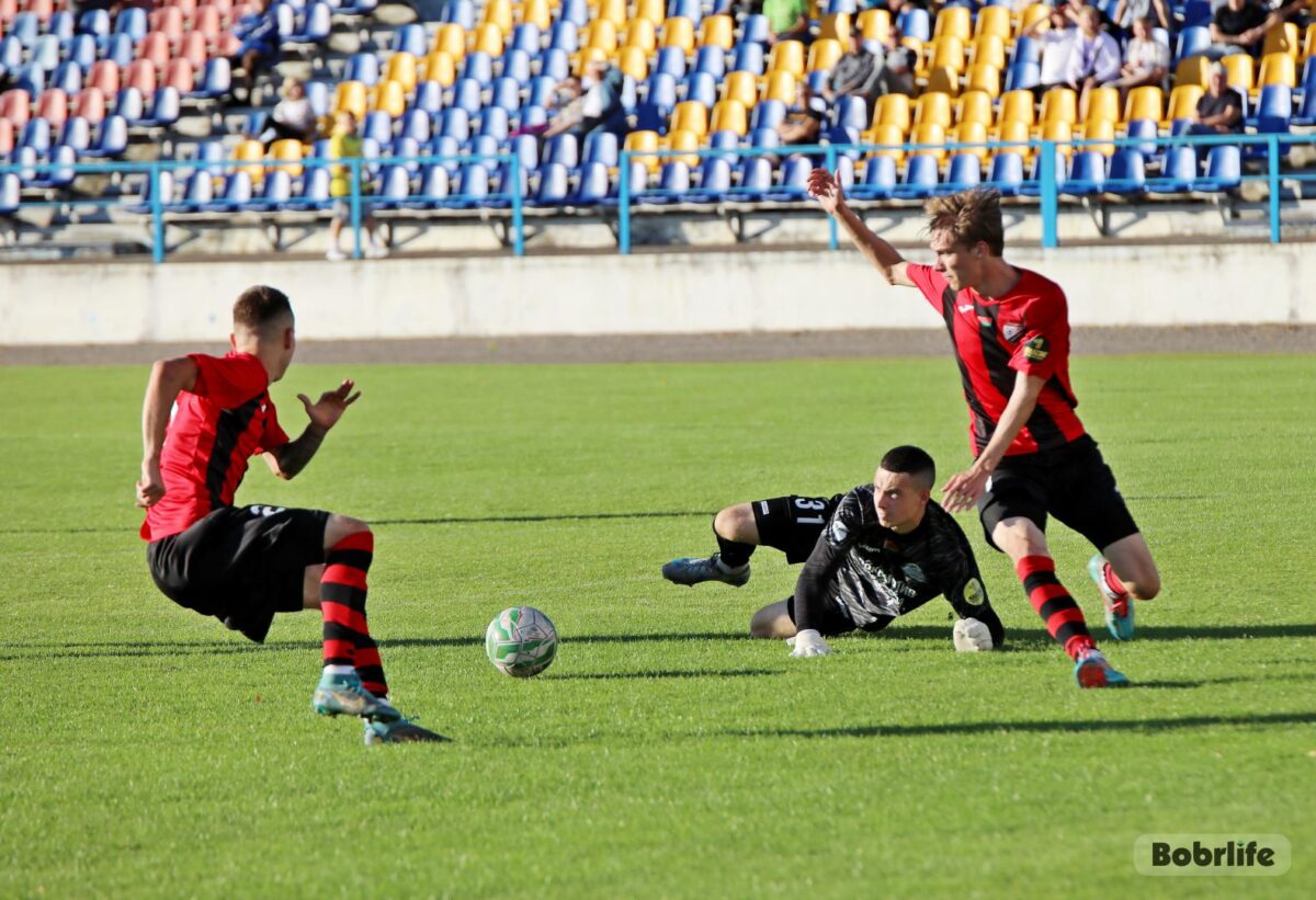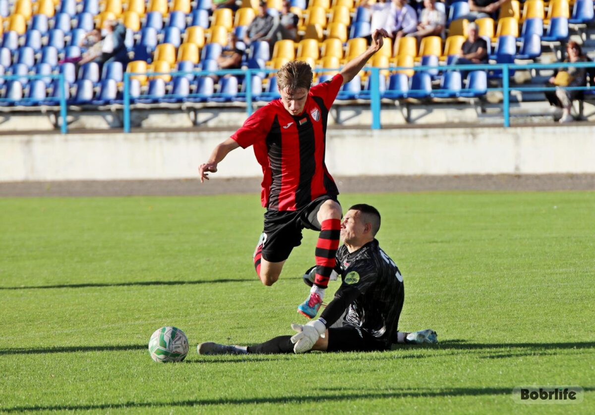 Отдадим должное команде соперника – игровой инициативой хозяева завладели с самого начала противостояния. Уже на 12-й минуте свои ворота спасал Никита Паценко после опасного удара метров с 11-12. Полевые игроки «Белшины» были вынуждены обороняться и играть на контратаках. И делали они это на отлично. А на 21-й минуте после подачи углового счет в нашу пользу был открыт. Сделал это защитник Павел Дубовский (пятый гол в сезоне). Под занавес первого тайма, на 43-й минуте, «красно-черные» удвоили свое преимущество. Два в один на вратаря «ГОБЖД» вышли Арсений Ачаповский и Никита Голуб. Удар Никиты голкипер парировал, а вот на добивании лучшим был подоспевший Илья Вихров.