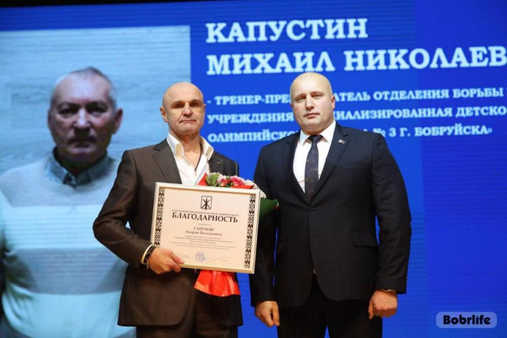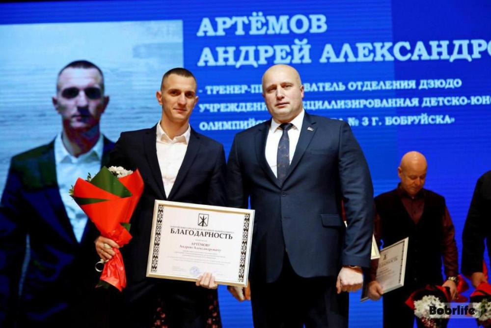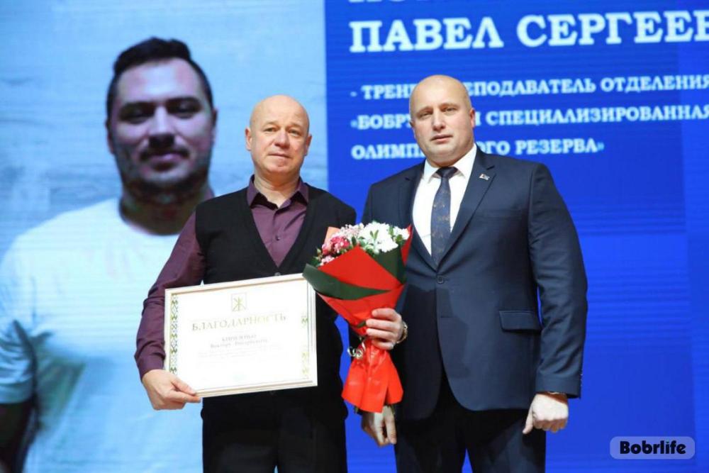 Лучшим спортсменам, тренерам и ветеранам спорта, внесшим значительный вклад в развитие спорта в Бобруйске, вручили благодарности и цветы. Они – гордость Приберезинского края! На сцену за заслуженными наградами поднимались мастера спорта и победители чемпионатов разного уровня Максим Садовский (бокс), Дмитрий Сорокин (бокс), Анастасия Енотова (вольная борьба), Алексей Маглюй (гребля на байдарках и каноэ), Константин Рогов (гребля на байдарках и каноэ), Иван Архипенко (гребля на байдарках и каноэ), Ксения Мастович (плавание), Артем Ковтюх (самбо), Дарья Новицкая (самбо), Мария Иванова (тяжелая атлетика). Это спортивные звезды нашего города, чьи достижения ценят, а их успехи и целеустремленность – мотивация для юных бобруйчан.