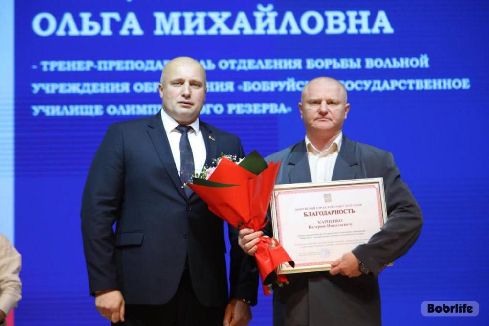 Наши спортсмены достойно представляют Бобруйск и Беларусь на крупнейших международных соревнованиях и чемпионатах, вносят личный вклад в развитие спортивной сферы. Рекорды, медали, стойкость и трудолюбие – это их подход к покорению Олимпа, это они растят спортивную смену и талантливых чемпионов. Благодарности от горисполкома и горсовета депутатов получили Дарья Наумова, Диана Прудникова, Олег Пронев, Борис Бирюков, Александр Федоров, Василий Донской, Виктория Волк, Валерий Карпенко, Ольга Земцова, Кирилл Терентьев.