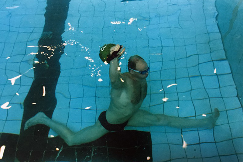 — А был ведь еще один необычный рекорд, когда ты поднимал 32‑килограммовую гирю, сидя на шпагате под водой!