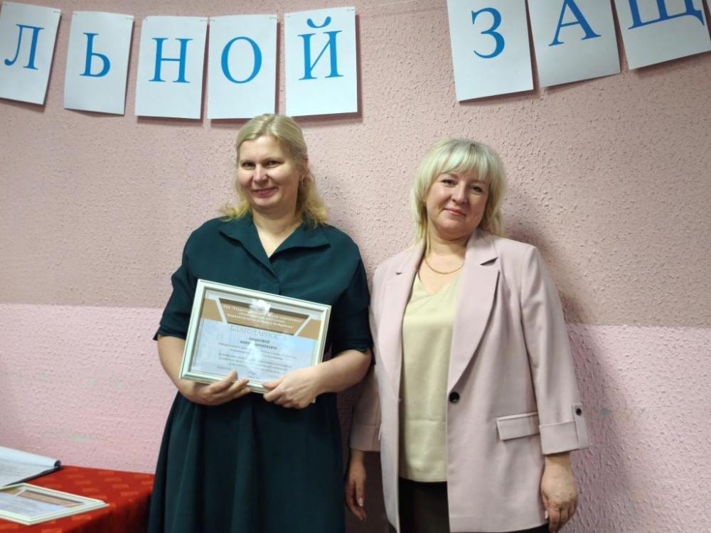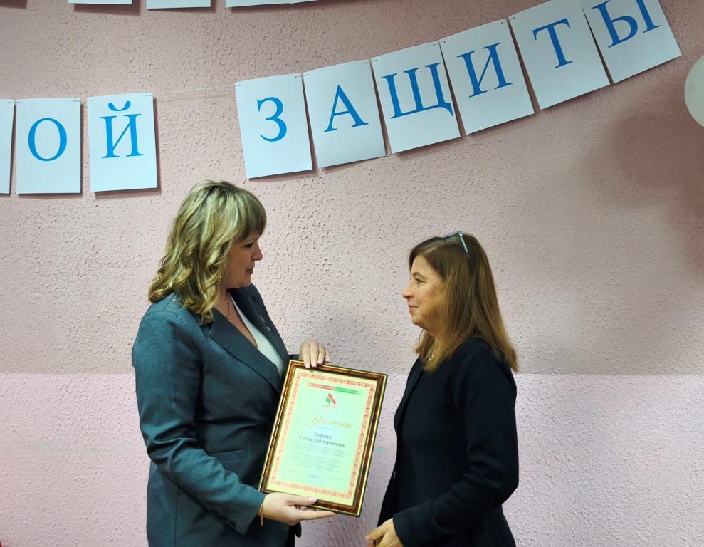 За добросовестный труд, активную гражданскую позицию, личный вклад в реализацию уставных целей и задач РОО «Белая Русь» и в связи с профессиональным праздником – Днем работников социальной защиты грамотой Первомайской районной организации г. Бобруйска РОО «Белая Русь» награждена бухгалтер Центра Елена Дмитриевна Порсик.