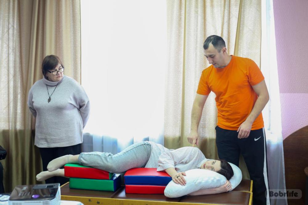 – Наш тренинг в рамках проекта «Молодые взрослые» нацелен на обучение правильному обращению с людьми с ограниченной подвижностью. К сожалению, они не могут сами перевернуться, удобно устроиться, и если их неправильно уложить, то высок риск пролежней, нарушений в суставах, нарушений кровообращения, затрагивающих внутренние органы. Мы рассказываем и показываем, как не причинить вред таким людям, как облегчить работу тем, кто за человеком ухаживает. Проводим такие встречи по запросу и всегда рады обучить, помочь. В Бобруйске мы впервые, ранее уже выезжали в Могилев, в планах также посетить Чериков, – рассказала Елена Коженевская, организатор тренинга, психолог ОО «Благотворительный детский хоспис».