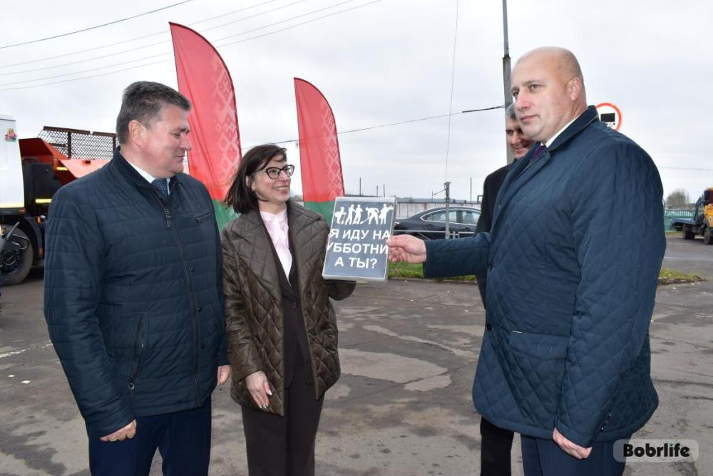 Завершился визит мэра города вручением ему памятного сувенира от коллектива дорожно-эксплуатационного предприятия – майки с надписью «Я иду на субботник. А ты?».