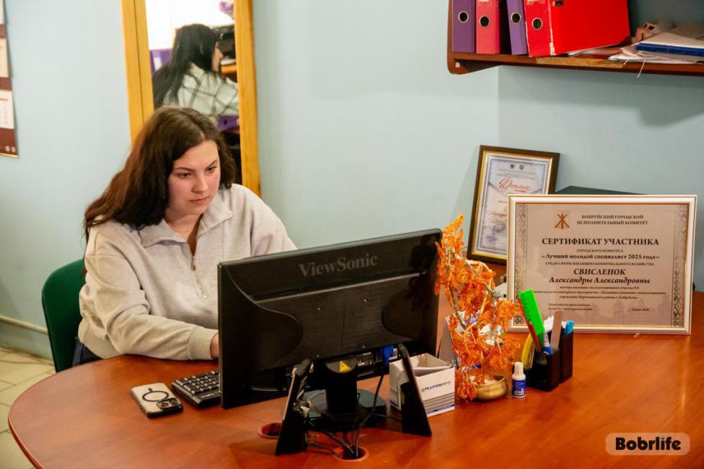 Свой трудовой путь Александра Свисленок начала после окончания Бобруйского аграрно-экономического колледжа. Уже тогда девушка четко осознала: сфера ей интересна. Поэтому и решение связать карьеру с ЖКХ стало закономерным. Сегодня молодая сотрудница работает мастером и вносит свой вклад в обеспечение комфортного проживания горожан.
