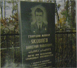 | 1 | Гв. майор | Яковлев Валерий Павлович | 1945 | 19.08.1983 | Кладбище по ул. Крылова |